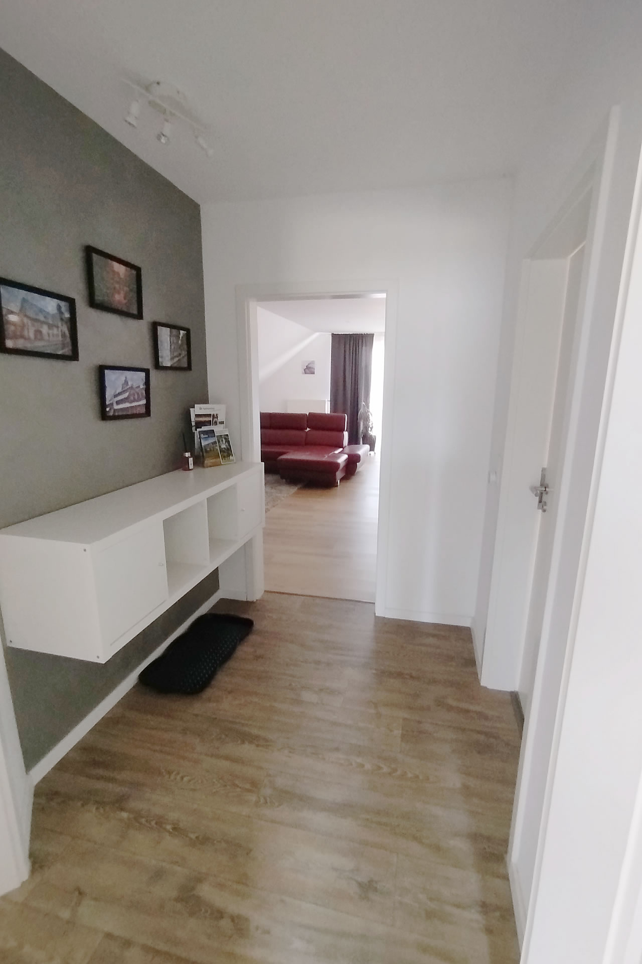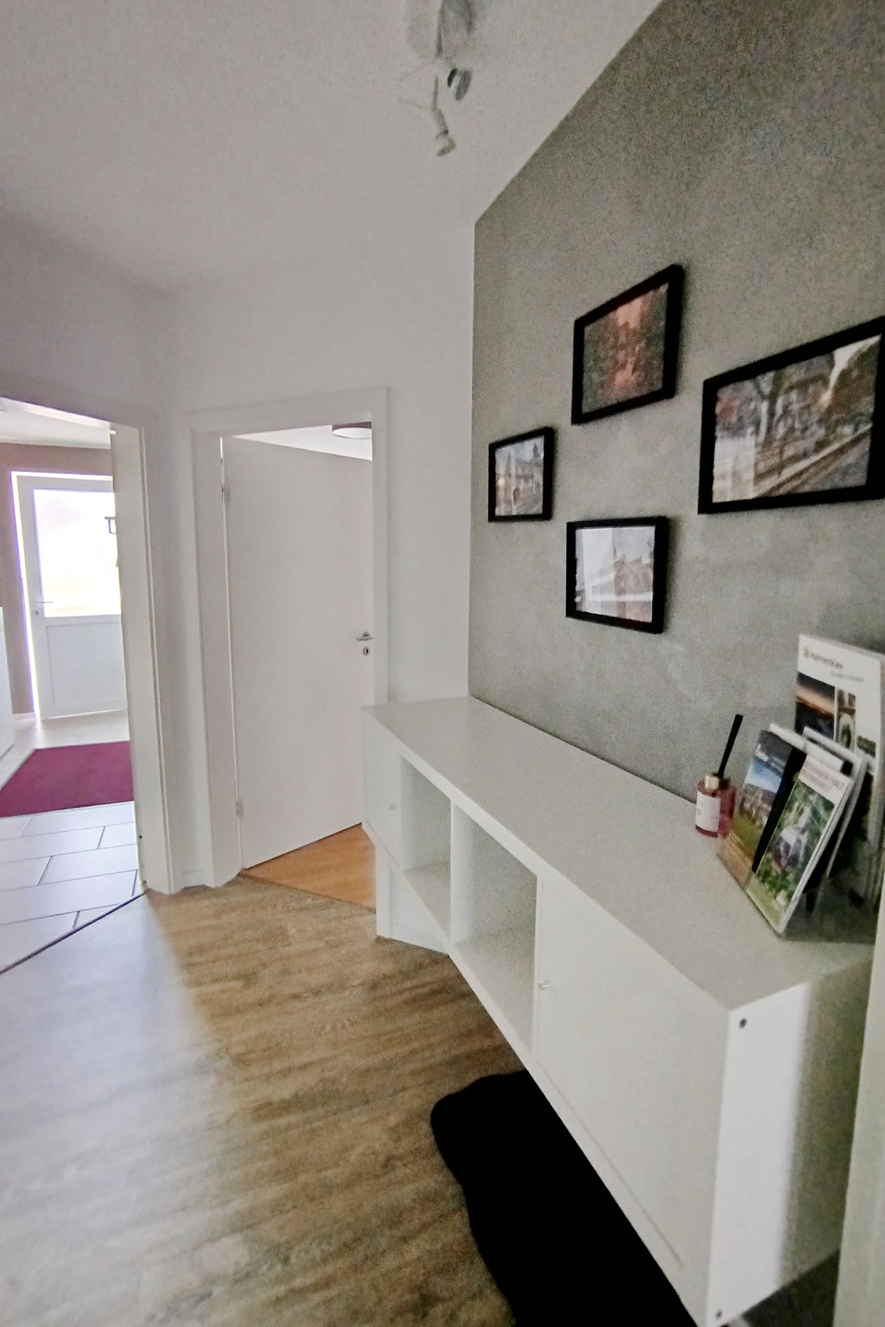 Gemütliche Wohnlandschaft mit Beistelltisch, großer LED Flachbildschirm (55 Zoll).