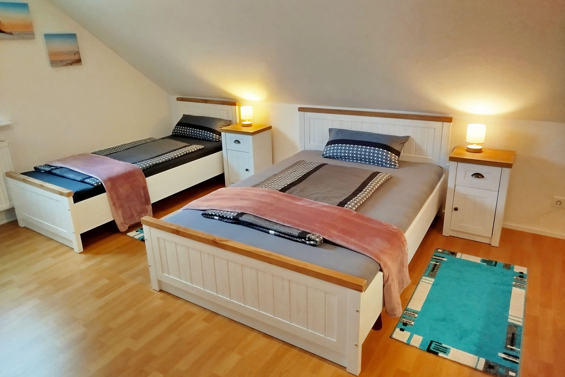 - Schlafzimmer mit einem französischem Bett ( 140 x 200 cm ),