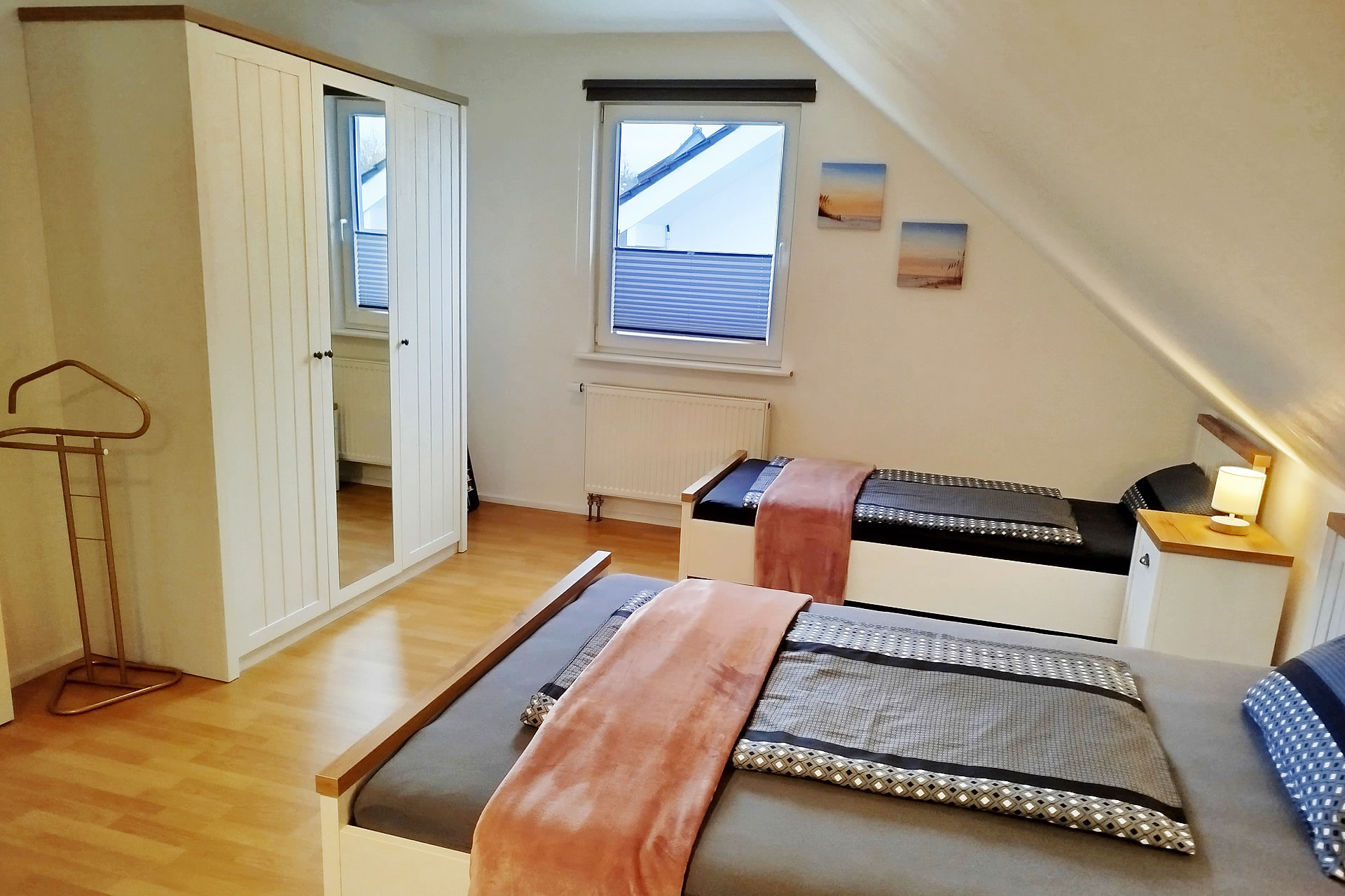 - Schlafzimmer mit einem französischem Bett ( 140 x 200 cm ),